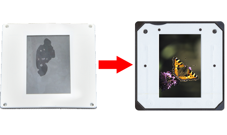 Wir rahmen Ihre Dias in neue ungeglaste Rahmen.