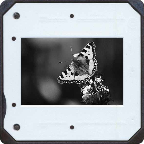 Ein gerahmtes Schwarz-Weiß-Dia lässt sich wie jedes andere Dia scannen aber...